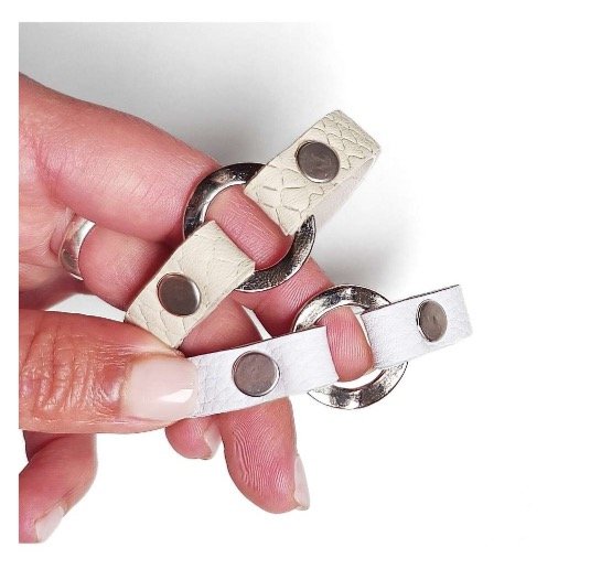 Pulsera tira de cuero 1 cm. Aplique argolla niquelada con desnivel (diámetro 2,3 cm)