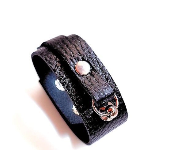 Pulsera media tira aplique sortija con esfera importado . Ancho 2,6 cm.