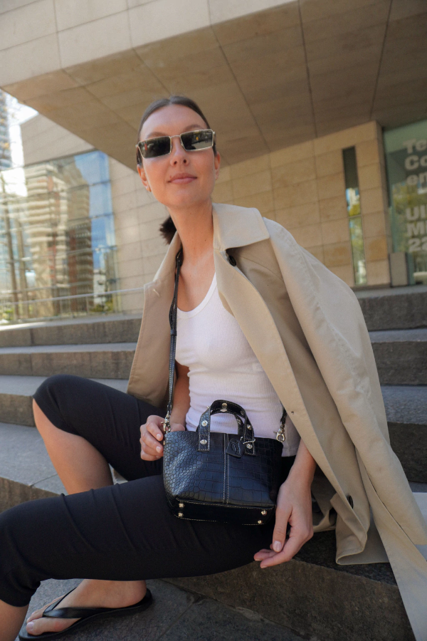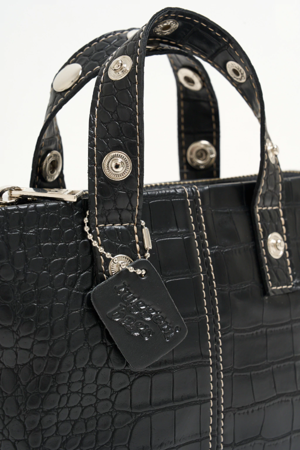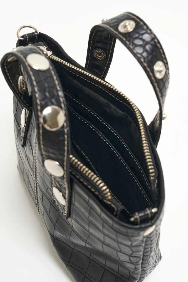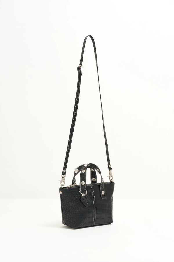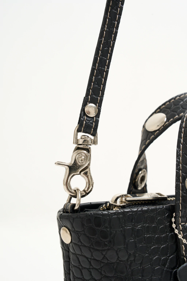 Nuestra Bandolera Mini Ola está confeccionada cuero sintético croco negro. Los detalles se apoderan de esta RB! Las costuras del frente son a contratono en natural, dándole un toque distintivo, lo mismo con el logo :) La correa es regulable y desmontable con mosquetones niquel. La apertura es con cierre metálico ykk y en su interior incluye tarjetero :)