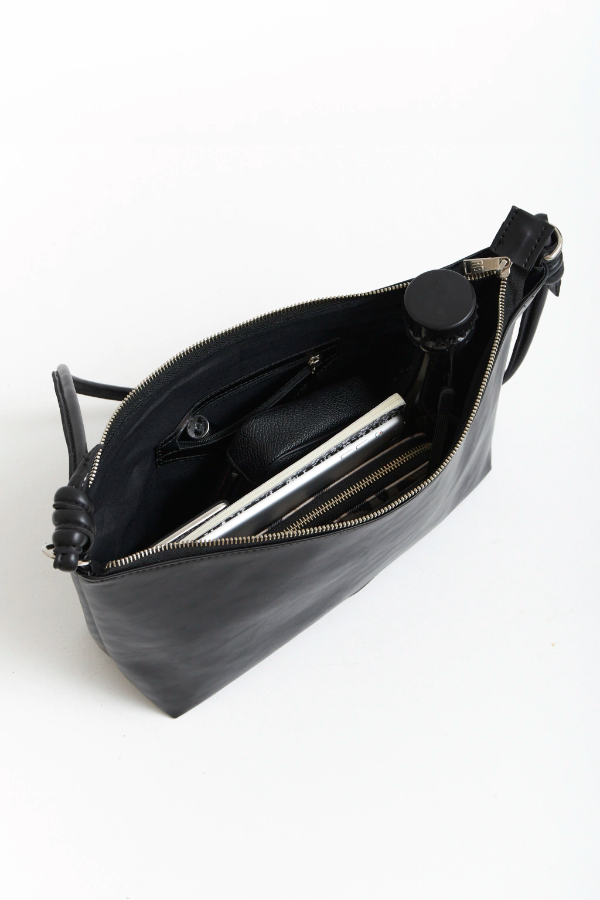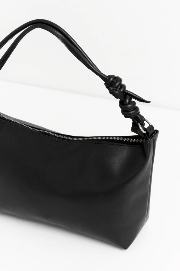 Cartera confeccionada en cuero sintético chocolate. Posee correas redondeadas con nuditos regulable, para que uses cruzada o al hombro. Apertura con cierre ykk metálico e interior con bolsillo y cierre.