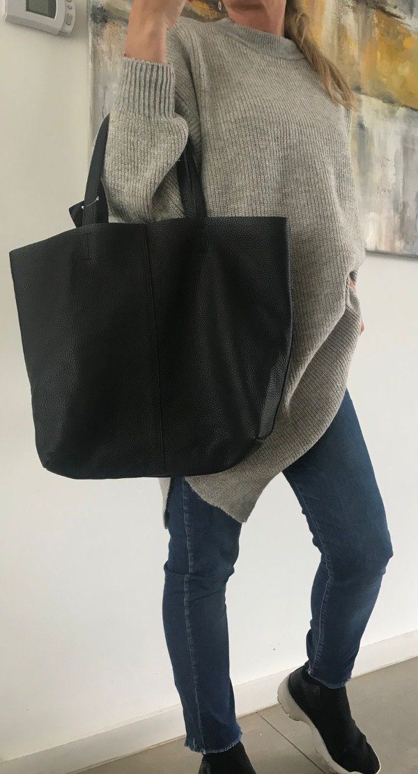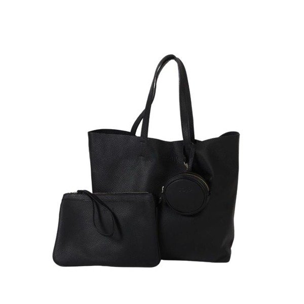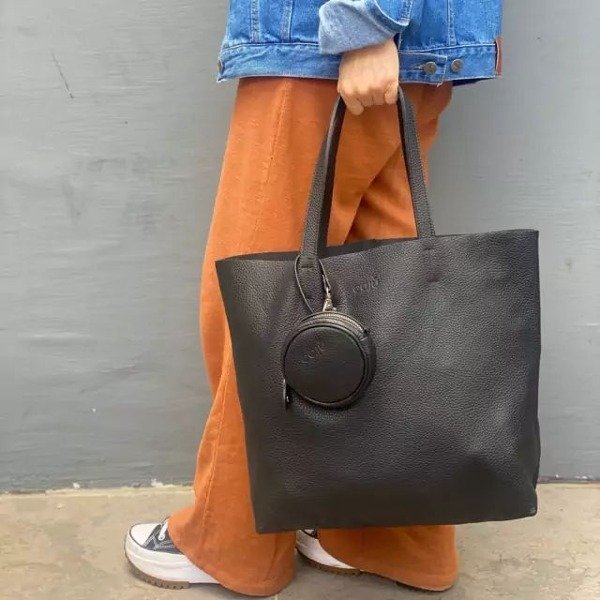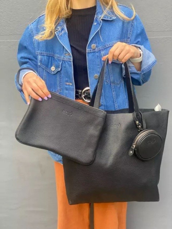 Cartera/Tote Cuero Negro con monedero y Neceser