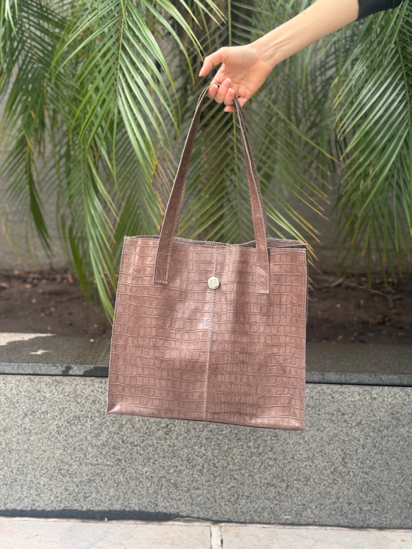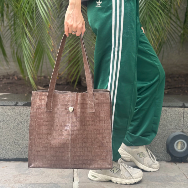 Elegante y sofisticada, esta cartera está confeccionada en cuero vacuno con textura croco y cuenta con cierre mediante botón para un acceso rápido y seguro. Posee un amplio bolsillo interno con cierre para mantener tus objetos organizados, mientras que el interior sin forrar resalta la autenticidad del cuero.